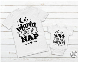 Mama loves to nap, naps are for quitters! Mothers day set - ladies t-shirt & baby vest