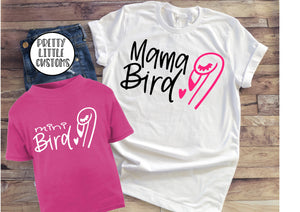 Mama bird, mini bird flamingo - Mummy & daughter tee set