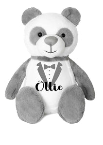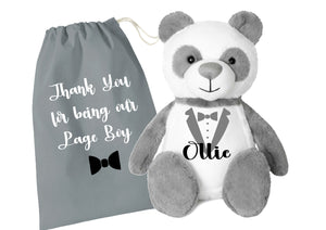 Personalised page boy pageboy thank you gift - panda teddy bear - tux tuxedo print