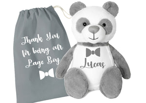 Personalised page boy pageboy thank you gift - panda teddy bear - bow tie print