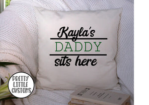 Personalised (your name)'s Daddy Sits here- white cushion cover