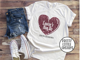 Personalised (Your Name)'s hen do, 2020 in lockdown commemorative print t-shirt