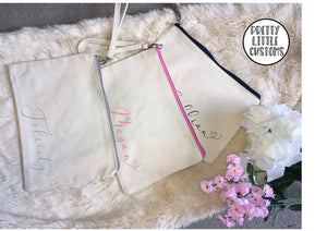 Personalised bridal party accessory pouch, clutch bag, gift - canvas