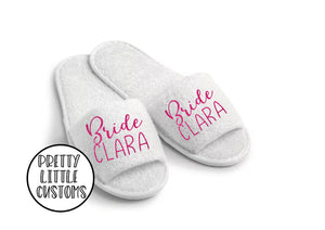 Personalised bridal party glitter print slippers - Bride - Style 2
