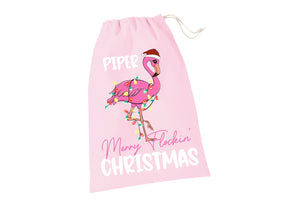 Personalised Christmas Santa Sack - (your name) - pink flamingo