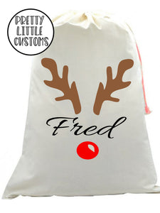 Personalised Christmas Santa Sack - (your name) -Glitter Reindeer
